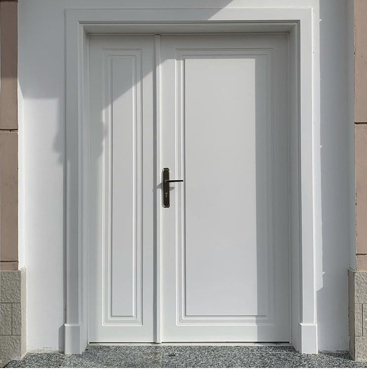 Model pintu minimalis dengan dua buah pintu, satu besar dan satu kecil, tidak hanya menawarkan fleksibilitas dalam penggunaan tetapi juga mampu menciptakan tampilan fasad yang lebih dinamis dan berkarakter. Dengan satu daun pintu utama berukuran besar dan satu pintu tambahan yang lebih kecil, desain ini memudahkan aktivitas harian tanpa harus membuka seluruh bagian pintu.
