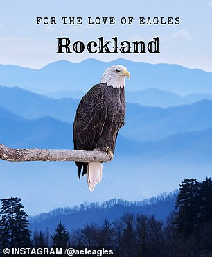Rockland has a healed fracture in his right wing, and his right ulna is shorter than his left, leaving a wing displaced. Rockland is not fully flighted and cannot travel long distances like an uninjured bald eagle. He also wears an orange identification band on his left leg with the letters SK on it.
