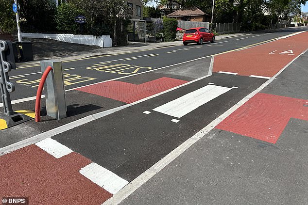 The strange road markings are located on a 3ft wide bike path on Ringwood Road. Cyclists are required to stop when someone is waiting to cross the path, which leads to a floating bus stop. Critics argue that this layout resembles a child’s play mat and could lead to dangerous situations.