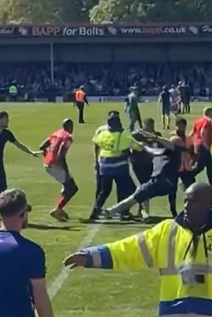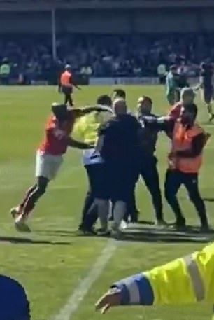 Boateng then moved around the steward amidst the chaos before reportedly striking out at the Rochdale supporter. The fan was seen stumbling backwards and falling onto the pitch. It remains unclear what happened after the brief clip was posted online. Daily Mail Sport has reached out to York City for further comment.