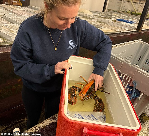 Julia Studley, a biologist at the Woods Hole Aquarium, explained how split colouration occurs. She stated that this phenomenon happens when two fertilized, unlaid eggs come into contact with each other, causing one to absorb the other. This results in a lobster with two sets of genetic information, allowing it to store different colour pigments on either side of its shell.